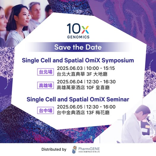 ✨Single Cell & Spatial OmiX Symposium 全台巡迴首站登場!✨ 📍日期:2025年6月3日(二)10:00–15:15 📍地點:台北大直典華..._Read More