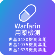 獨家取得中央研究院全球專屬授權華法林(Warfarin) 和其他藥物如 (Carbamaze-pine,Allopurinol) 等的基因檢測之相關專利,進一步開發成檢測產品或診斷工具,並陸續獲得全球各國 (包括美、歐、紐、澳、日本、中國、印度和東南亞等) 完整技術專利證明。