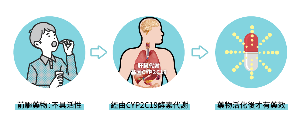 氯吡格雷為一前驅藥物,本身不具有抗血小板活性,在肝臟內需經酵素代謝成活性形式才具有抗血小板凝集的作用,